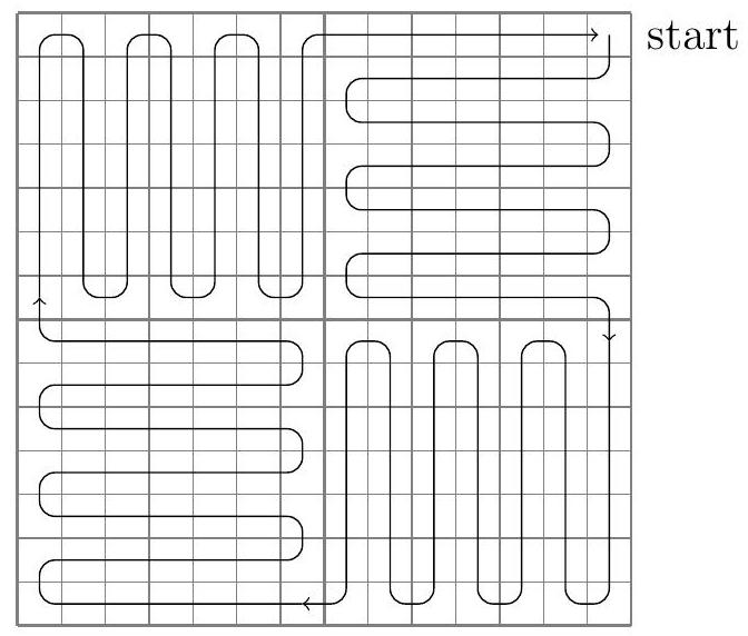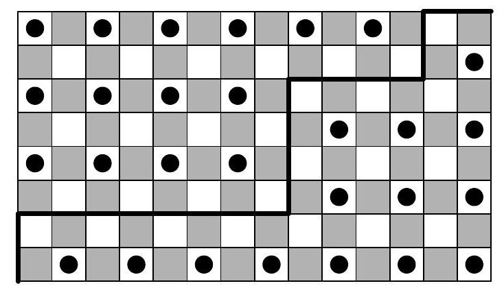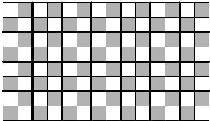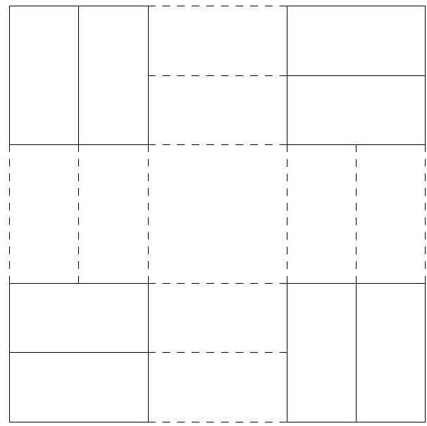 Par hypothèse, chaque séparatrice intersecte au moins un domino, donc elle en intersecte au moins 2 . Il y a 10 séparatrices, donc au moins 20 dominos du pavage sont intersectés par une séparatrice. Or, le pavage d'un carré $6 \times 6$ contient exactement 18 dominos. On a abouti à une contradiction.
