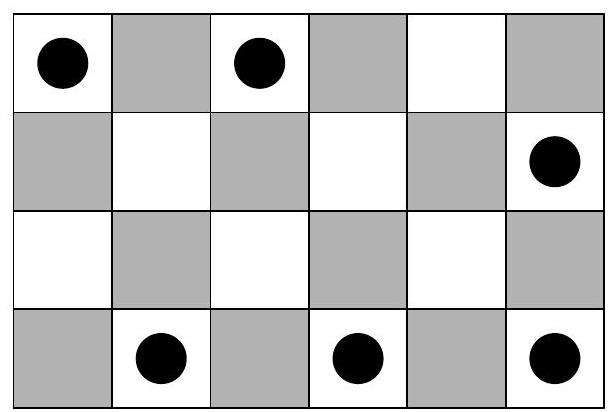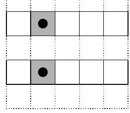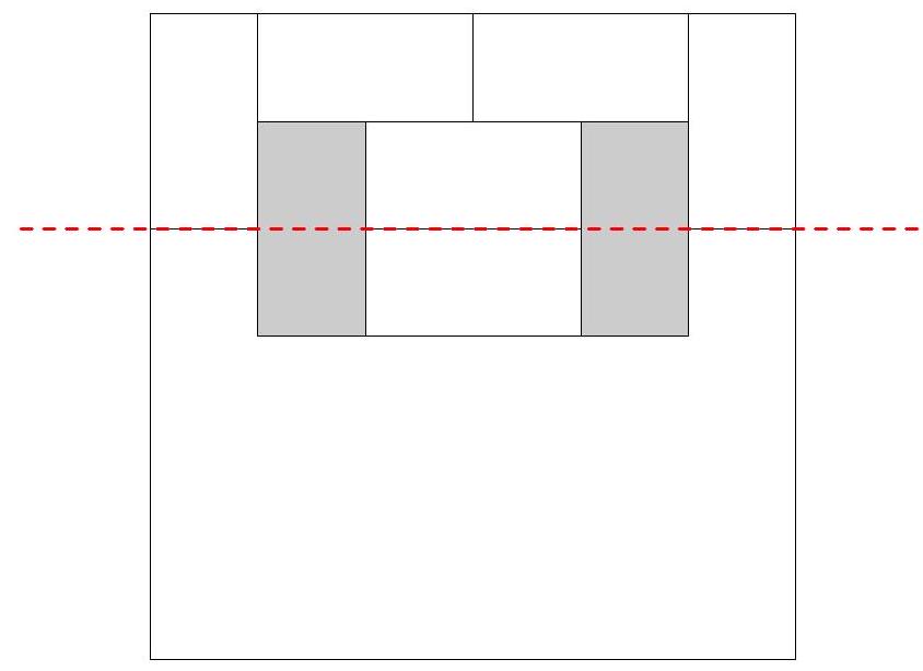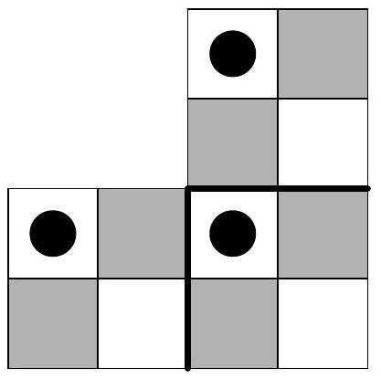 Cas $\mathrm{n}=\mathbf{6}$ : Supposons au contraire qu'il existe une configuration de dominos telle que chaque ligne coupant le tableau en deux parties non vides coupe au moins un domino. On ne va considérer que les lignes horizontales séparant deux rangées et les lignes verticales séparant deux colonnes du tableau, on appelle ces lignes des séparatrices, et les deux parties non vides du tableau obtenues avec une séparatrice des sections.