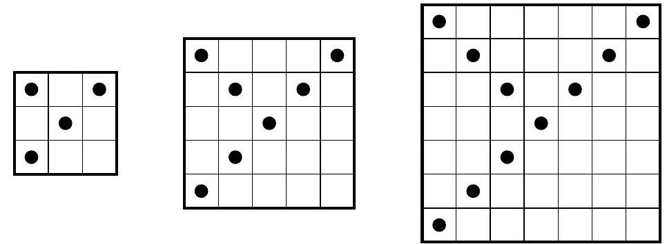 Commentaire des correcteurs : Le problème a été très peu abordé et en somme très peu résolu. Les élèves ayant rendu une tentative ont donné de bons arguments pour montrer que $\mathrm{n} \leqslant 6$ en proposant des constructions par récurrence.