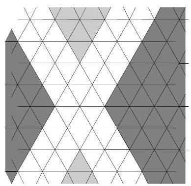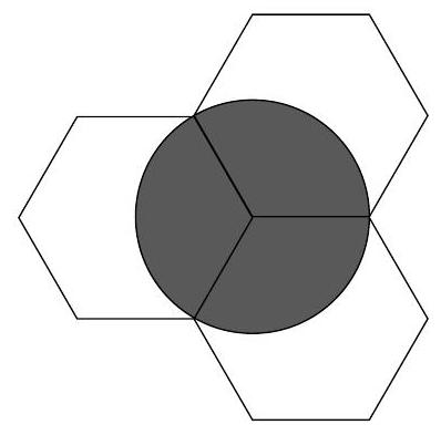 We then draw the region; we get a hexagon as shown. The hexagon intersects each region in an isosceles right triangle of area $1 / 8$, so the total area is $6 \cdot 1 / 8=3 / 4$.