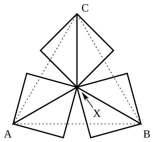P C=\left(P A^{2}+A C^{2}-2 P A \cdot A C \cos 120^{\circ}\right)^{1 / 2}=(3+3+3)^{1 / 2}=3 .