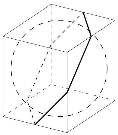 possible vertices adjacent to exactly one of them is two circles of radius $\frac{\sqrt{2}}{2}$, and the locus of possible vertices adjacent to neither of them is a circle of radius $\frac{\sqrt{3}}{2}$. If the two given vertices are separated by a long diagonal, then each of the other vertices lie on one of two circles of radius $\frac{\sqrt{2}}{3}$, for a total of 10 circles.