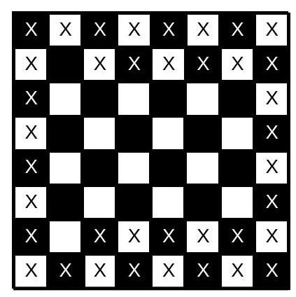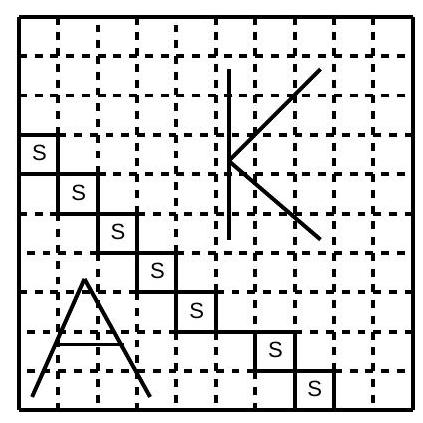 patches. If Ann farms a total of $30<8 \cdot 9 / 2$ patches, then we have $n<8$. On the other hand, $n=7$ scarecrows are possible, as shown: